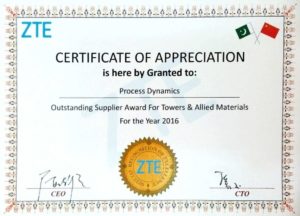 Alpha Award from ZTE in 2015 as best partner of Tower and accessories supplies.